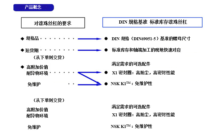 目前,滚珠丝杠是机床、汽车制造设备、半导体制造设备等产业机械领域中不可或缺的重要机械零部件。为满足市场的各种需求,NSK在提供订单式产品的同时,为实现滚珠丝杠的标准化和短货期化,将标准库存品进行了系列化并推向市场。